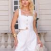 Perfeito para dias mais quentes, combine com o Cropped Mussy para um look coordenado e chic ou com camisas leves para um visual sofisticado e versátil.