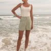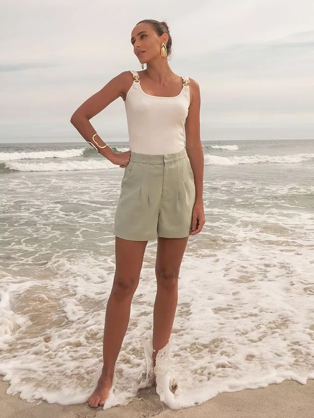 Confeccionada em alfaiataria de alta qualidade, esta bermuda de comprimento médio é a escolha ideal para quem busca conforto sem abrir mão de um visual sofisticado. A modelagem de cintura alta e a abertura frontal conferem um toque moderno e estiloso, além de valorizar a silhueta. A alfaiataria é uma tendência que permanece em alta, trazendo um ar de elegância casual para o look. A peça pode ser facilmente combinada com blusas de tecido leve ou camisas, criando desde visuais descontraídos até mais formais, para o dia a dia no trabalho ou ocasiões especiais. Um item versátil que resolve o problema de criar looks elegantes e práticos no verão.