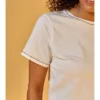 Esta blusa solta é a união perfeita de conforto e detalhes artesanais. Com uma modelagem relaxada, ela é ideal para o dia a dia, oferecendo liberdade de movimento e um toque de estilo. O bordado manual na gola adiciona um elemento de design único, enquanto a meia malha garante um uso agradável. Combine-a com jeans ou uma saia para um look casual-chique.