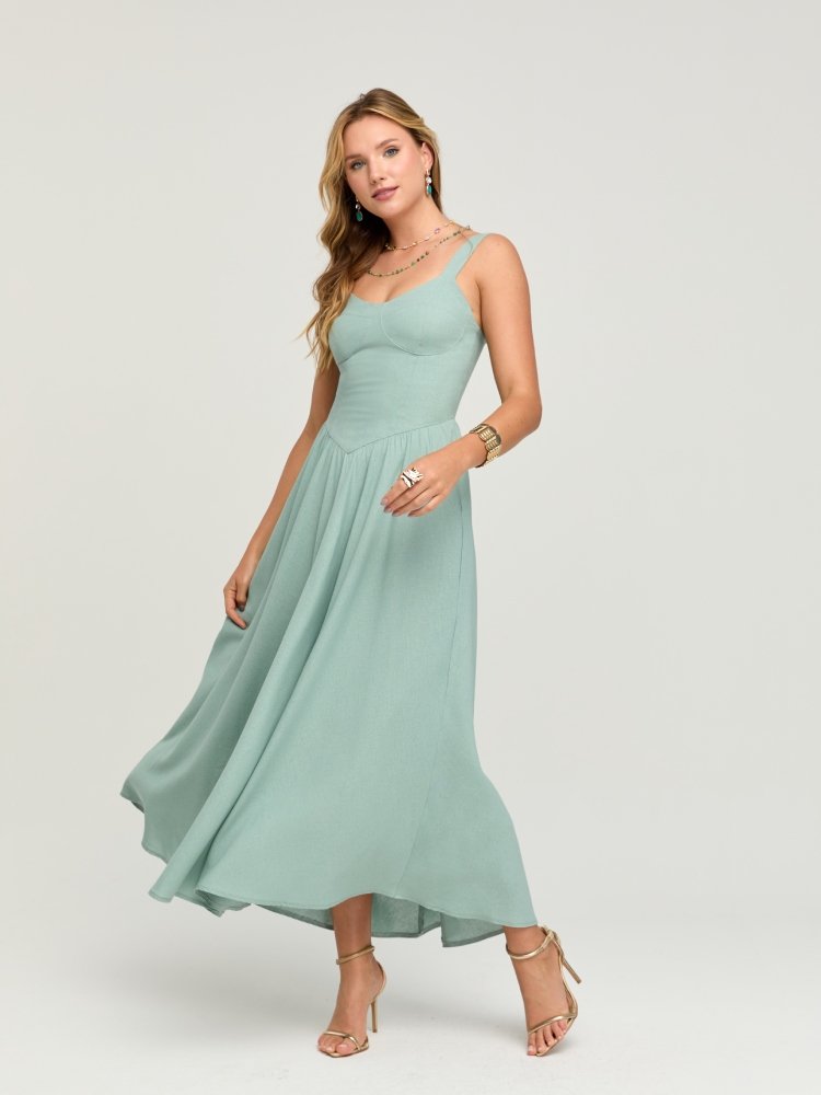 Um clássico repaginado para mulheres que prezam por sofisticação com leveza. Este vestido midi é confeccionado em linho misto, com caimento fluido e toque natural. A modelagem evasê valoriza a silhueta com movimento, enquanto os recortes estratégicos e as alças largas garantem conforto e estrutura. O zíper discreto nas costas mantém a praticidade com elegância. Ideal para compor looks em dias de sol com sandálias neutras e acessórios em fibras naturais, perfeito para almoços especiais, eventos diurnos ou aquele passeio à beira-mar com charme.