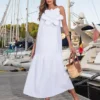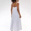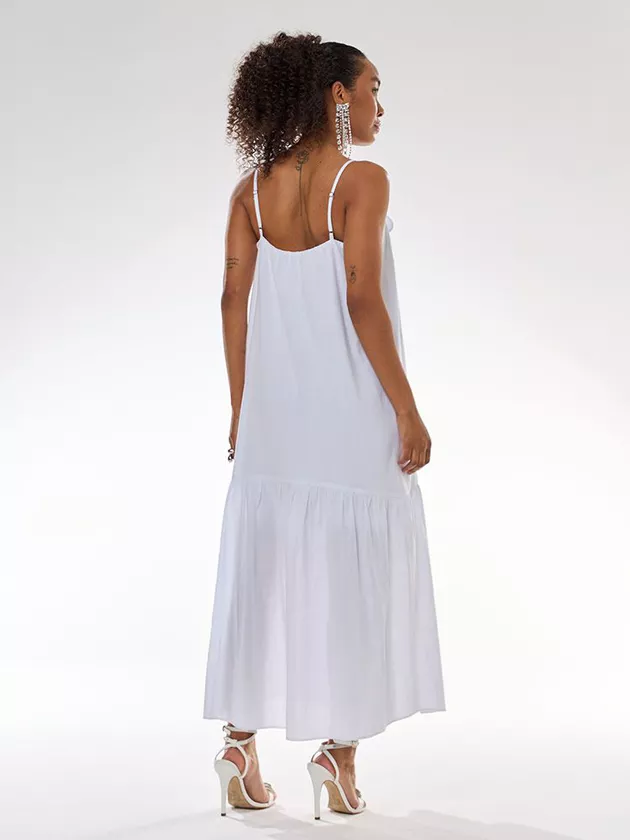 Esse vestido mídi, confeccionado em algodão, é uma peça leve e romântica. A modelagem solta proporciona conforto e movimento, enquanto a flor removível nas alças largas adiciona um toque delicado e versátil ao design. Perfeito para dias mais quentes, esse vestido pode ser usado tanto em eventos casuais quanto em ocasiões que pedem um visual mais elaborado. Combine com sandálias delicadas ou rasteirinhas para um look leve e sofisticado, com a opção de personalizar o visual com ou sem o acessório floral.