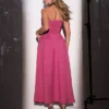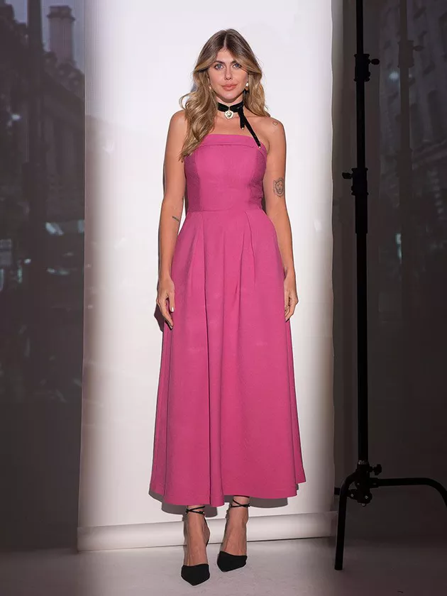 Este vestido midi evasê é a personificação da elegância atemporal, com seu busto marcado e recortes precisos que realçam a silhueta feminina. O detalhe dos ombros nus adiciona um toque de ousadia e charme, tornando-o perfeito para ocasiões especiais. O bolso funcional e a abertura em zíper nas costas unem praticidade e estilo, enquanto o tecido de alfaiataria garante um caimento impecável e uma sensação de luxo. Ideal para eventos formais ou celebrações, este vestido oferece uma combinação perfeita de sofisticação e conforto.