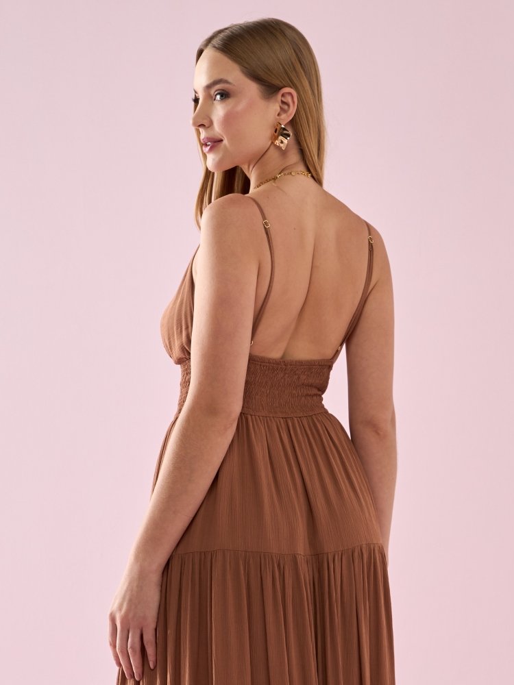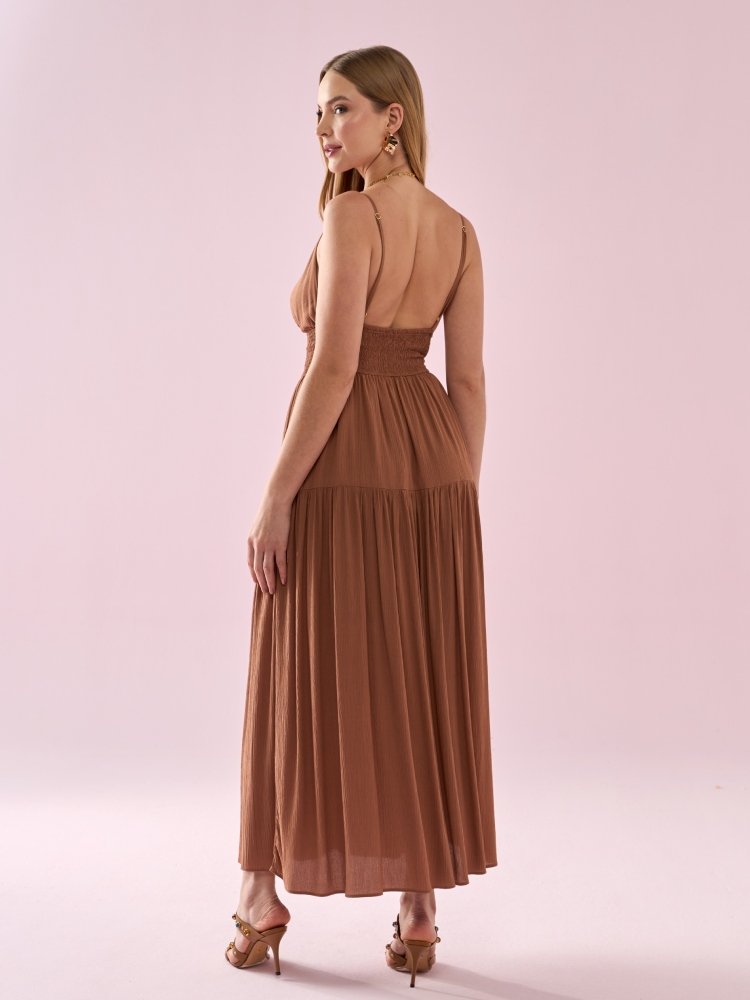 O Vestido Longo em Viscose é sinônimo de leveza e elegância. Confeccionado em tecido fluido e natural, garante frescor e caimento delicado. O busto marcado valoriza a silhueta, enquanto as alças finas trazem feminilidade e delicadeza ao design, tornando a peça atemporal e sofisticada. Ideal para produções que pedem charme e conforto, combine-o com sandálias de salto baixo para um look diurno leve ou com acessórios refinados para ocasiões especiais à noite.