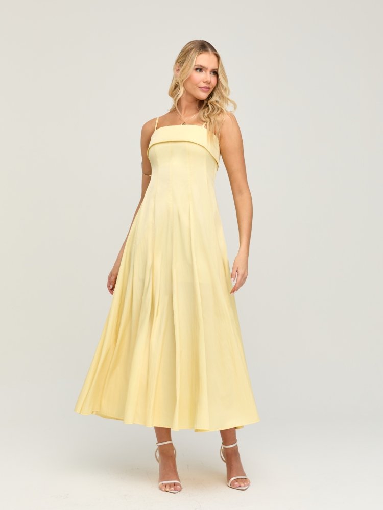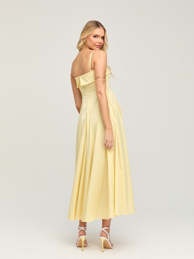 Elegância minimalista em sua forma mais refinada. Este vestido midi em alfaiataria traz recortes que desenham sutilmente a silhueta, enquanto as alças finas adicionam leveza e delicadeza à peça. O zíper invisível garante um acabamento limpo e contemporâneo, ideal para quem busca sofisticação com frescor. Perfeito para eventos que pedem um look mais elaborado, combine com sandálias de tiras e clutch estruturada para jantares, coquetéis ou celebrações especiais.