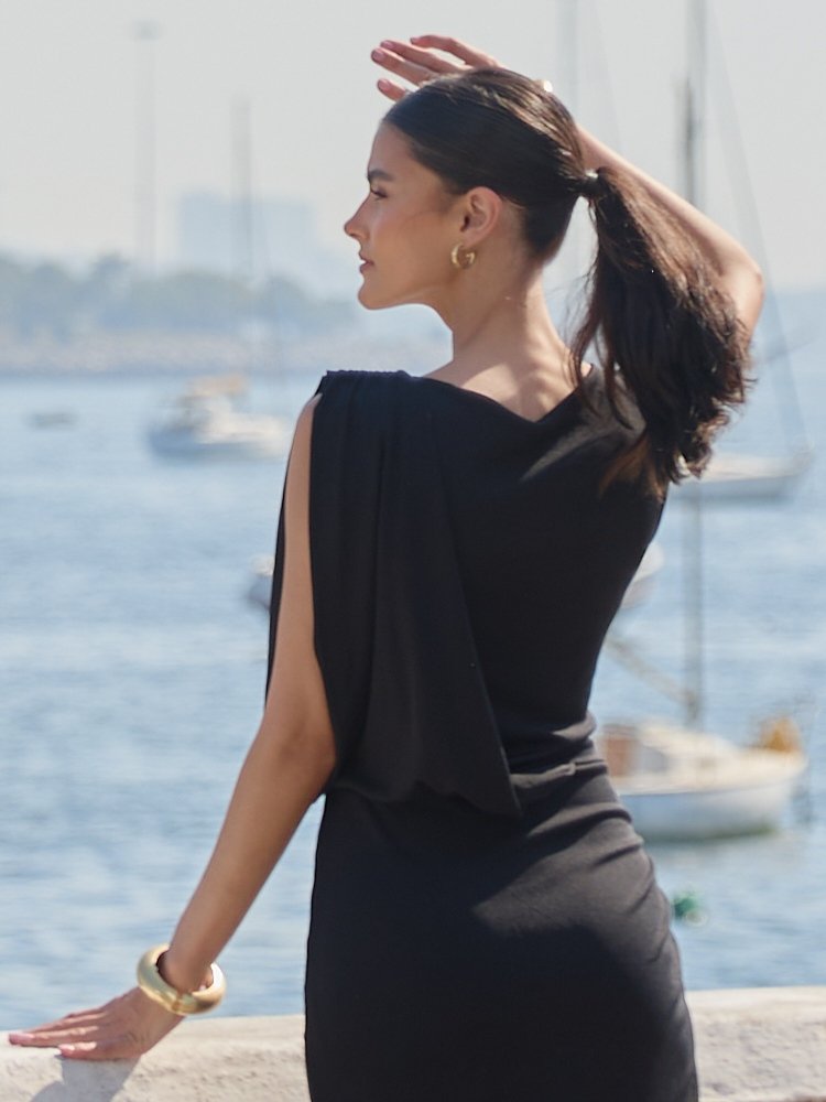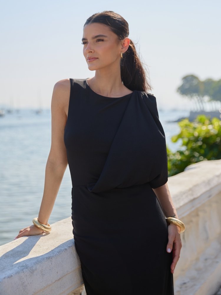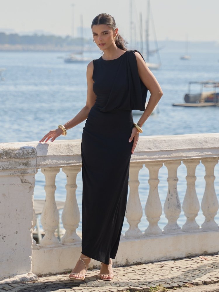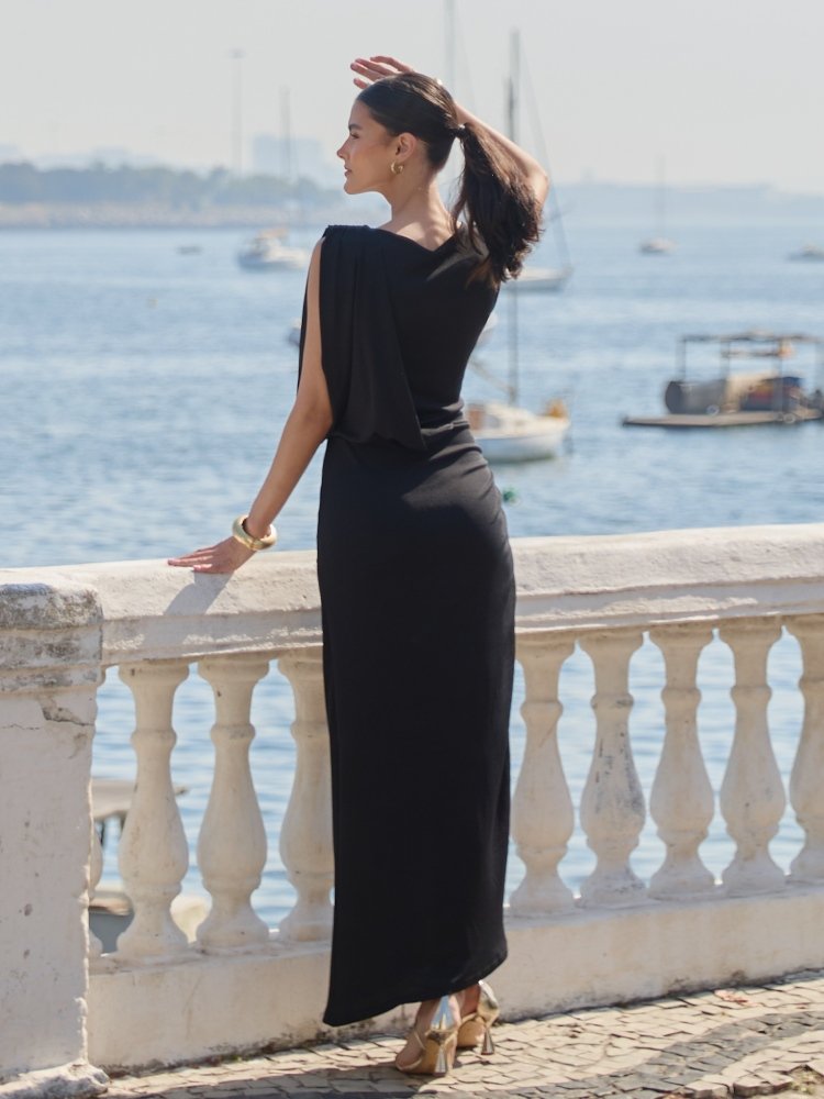 Perfeito para eventos especiais ou jantares elegantes, combine com sandálias de salto e acessórios minimalistas para um look marcante e refinado.