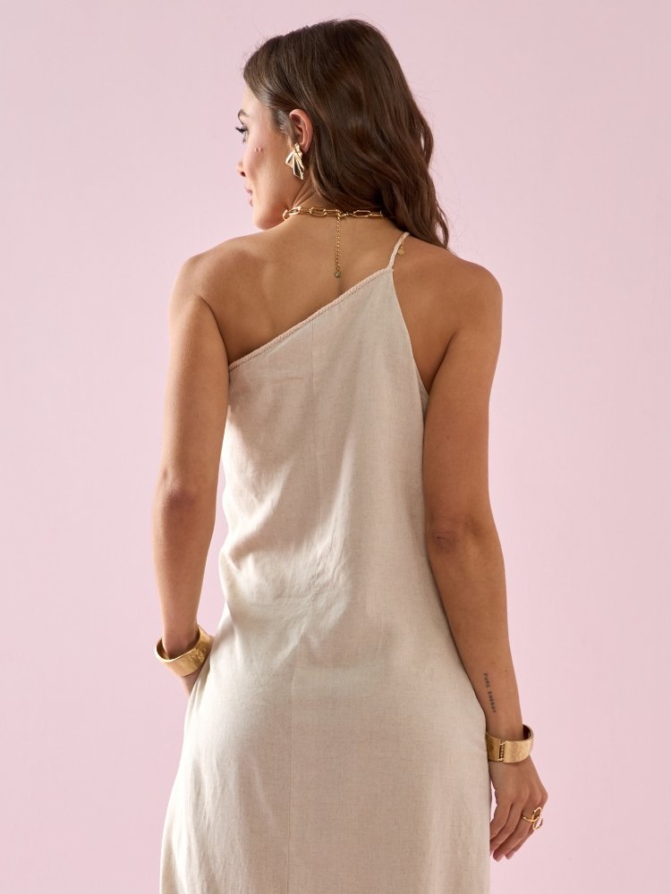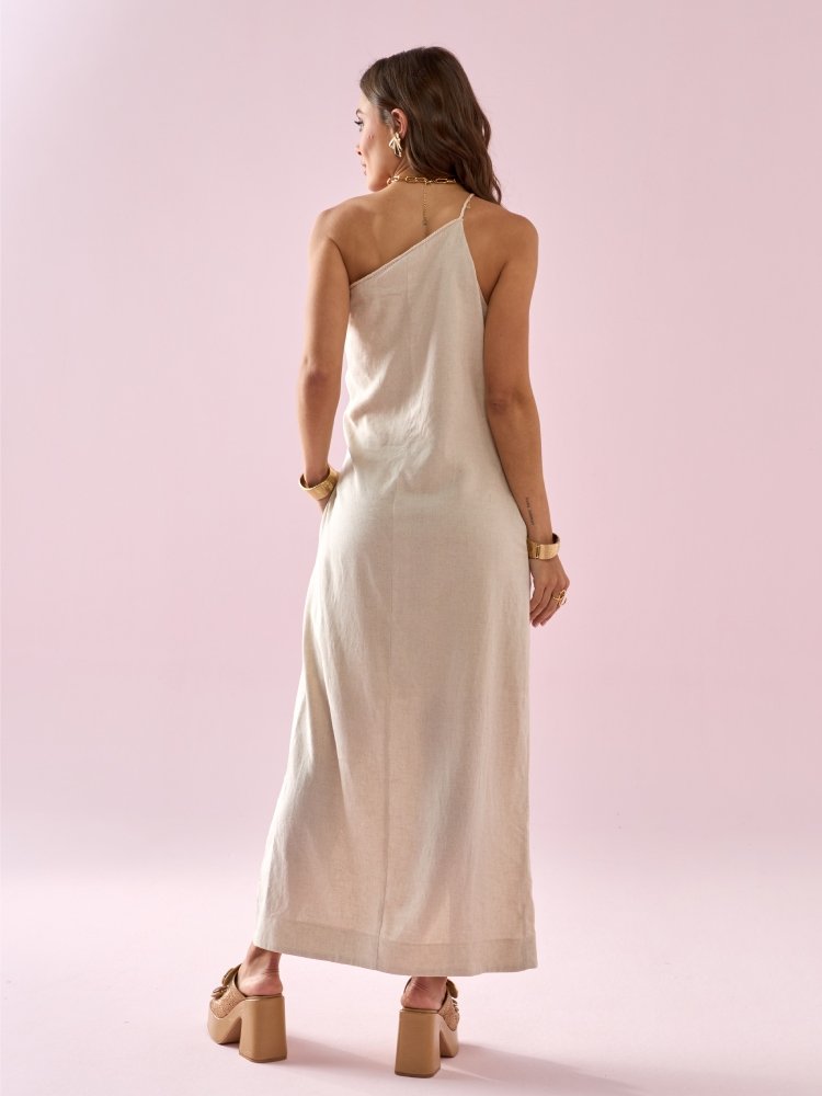 Vestido midi assimétrico linho