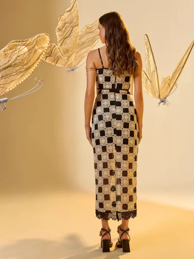 Este vestido mídi de algodão com textura de crochê oferece um charme rústico com um toque contemporâneo. A modelagem reta valoriza a forma sem restringir, enquanto os recortes e a alça fina mantêm o design minimalista e elegante. A abertura com zíper nas costas facilita o uso, e os detalhes em vivo aprimoram a estrutura da peça. Ideal para eventos diurnos ou encontros casuais, este vestido promove uma aparência sofisticada e confortável.