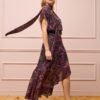 O Vestido Midi se destaca pela construção impecável, que combina leveza e romantismo em cada detalhe. Confeccionado em crepe fluido, ele apresenta ombros deslocados com recorte drapeado, criando um efeito suave e moderno. O decote em V alonga a silhueta com delicadeza, enquanto a gola versátil — que pode ser usada como laço ou cachecol — adiciona um toque extra de charme. A saia com babado assimétrico dá movimento ao caminhar, revelando um caimento elegante e envolvente. A estampa exclusiva, criada nas cores da coleção, completa a peça com personalidade e harmonia.