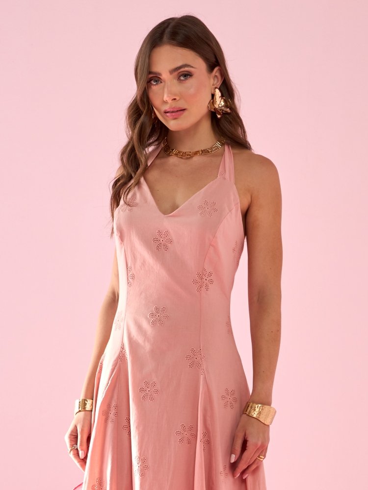 Elegante e cheio de frescor, o vestido midi frente única Angra é confeccionado em tecido plano de algodão bordado, que combina leveza e sofisticação. O detalhe da frente única valoriza o colo com delicadeza, enquanto o caimento do tecido proporciona conforto e movimento refinado. Ideal para compor produções em dias ensolarados, combine-o com sandálias de amarração e acessórios em palha para um visual sofisticado de verão.