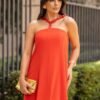 Confeccionado em linho de viscose, o Vestido Midi traz leveza e sofisticação em cada detalhe. Sua modelagem evasê garante movimento fluido e atemporal, enquanto os recortes estratégicos valorizam a silhueta com elegância. O decote com aplicação de pedrarias delicadas adiciona um toque de brilho sutil e refinado, perfeito para ocasiões especiais. Combine com sandálias de tiras finas e acessórios discretos para um jantar elegante, ou aposte em salto bloco e clutch estruturada para compor um look marcante em eventos sociais.