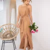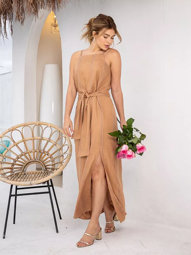 Feito em um mix de viscose e linho listrado, este vestido midi une conforto e elegância com um toque de frescor. Sua modelagem reta, com aberturas discretas nas laterais da saia, proporciona leveza e movimento, ideal para os dias mais quentes. O decote trapézio destaca o colo e os ombros de forma sofisticada, enquanto a amarração na cintura ajusta a silhueta e traz feminilidade ao look. Perfeito para quem busca um visual atual e prático, seguindo a tendência das peças descomplicadas e versáteis. Use-o no trabalho com flats ou em um almoço descontraído com sandálias rasteiras. Um curinga para o guarda-roupa, que alia estilo e conforto sem esforço.