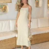 Feito em malha com textura de listras em relevo, esse vestido midi é a escolha ideal para quem quer unir conforto e estilo. A modelagem ajustada ao corpo destaca as curvas, enquanto as fendas laterais garantem movimento e frescor. O detalhe trançado nas alças dá um toque diferenciado e cheio de personalidade. Alinhado à tendência de peças com texturas e detalhes minimalistas, ele pode ser usado no dia a dia ou em eventos casuais, sempre garantindo um visual moderno e descomplicado. Um verdadeiro coringa para os dias mais quentes.